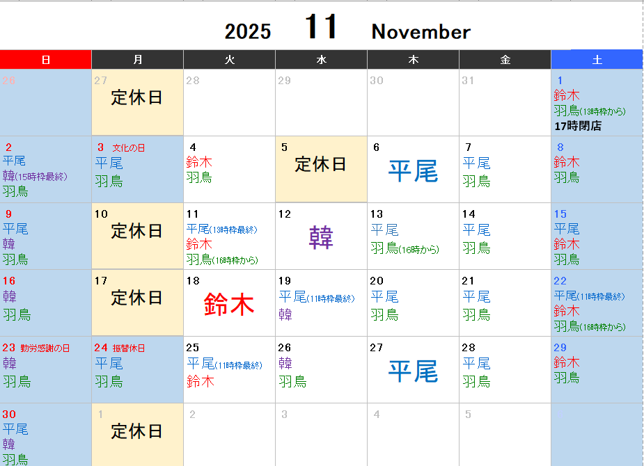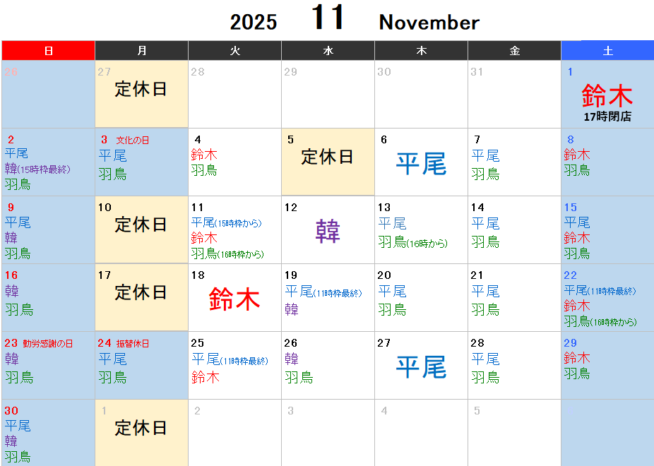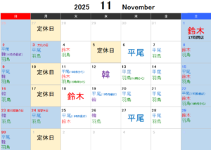 11月のスケジュールについてお知らせさせていただきます。