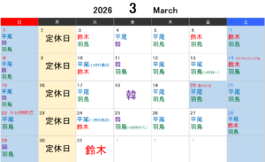 3月のスケジュールについてお知らせさせていただきます。
